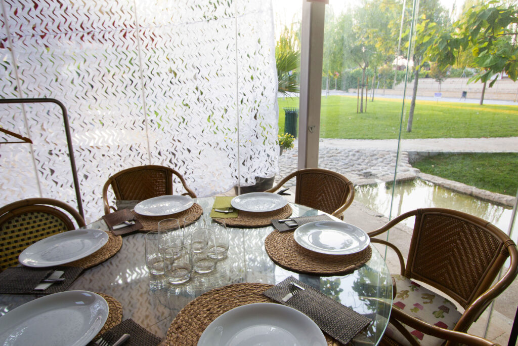 El área dispone a escasos metro de una zona de pinar donde disfrutar toda la familia, un parque de juegos para que los niños puedan disfrutar mientras que los padres puedan vigilarlos fácilmente desde su mesa, una piscina pública y, además, está enfrente del polideportivo.